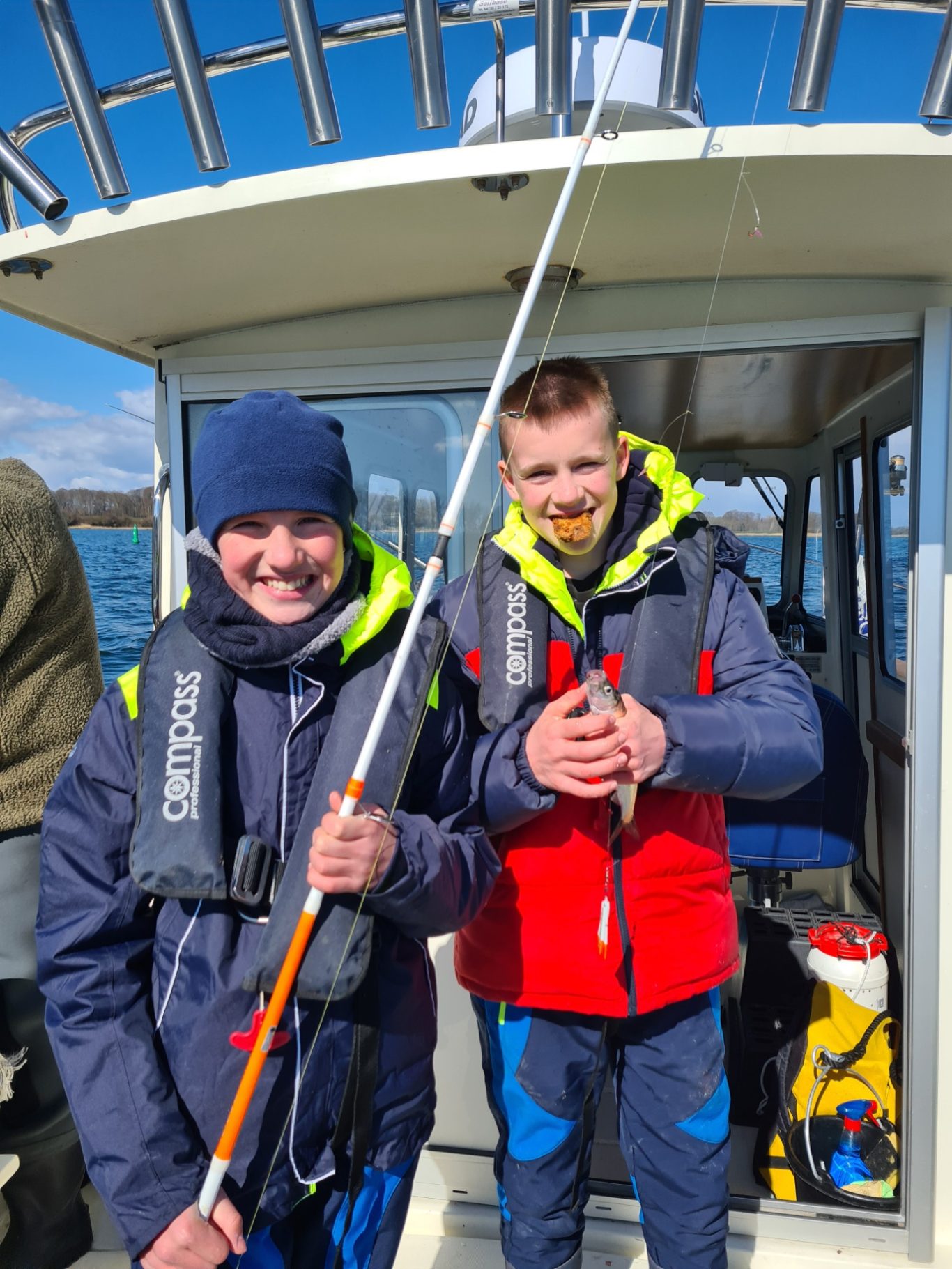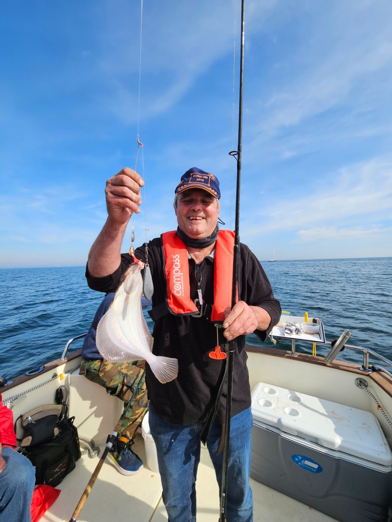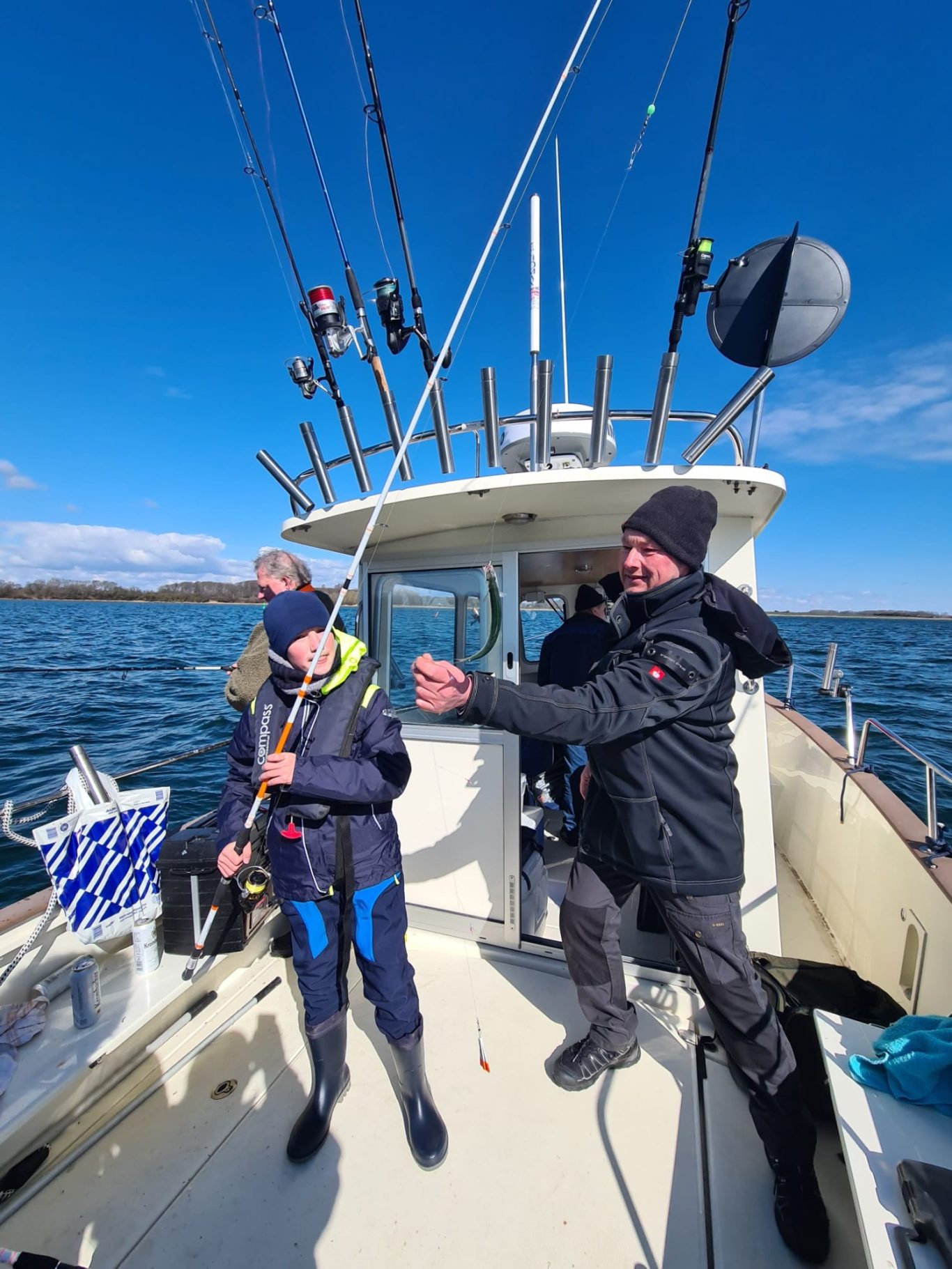 Wir fahren unser Hochseeboot immer mit 2 Mann Besatzung; d.h. Skipper + Decksmann, die sich beide sowohl um die Sicherheit an Bord als auch um das Wohlbefinden und die Angelkompetenz unserer Gäste kümmern (Angelguiding)!